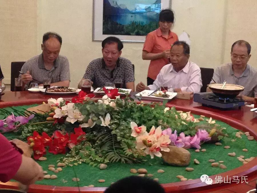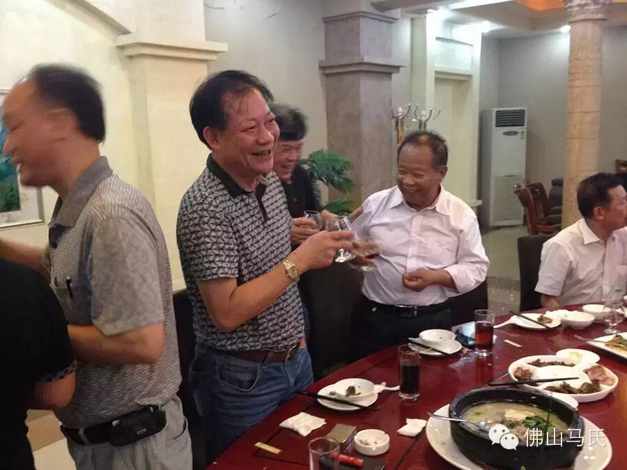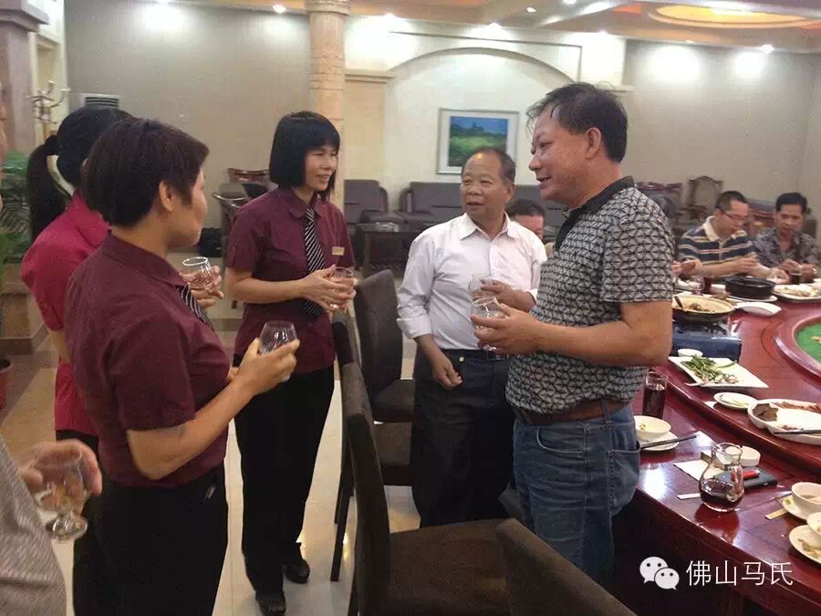 傍晚六时许,国荣宗长在江门市金海洋燕鲍翅酒楼设盛宴招待了来自各地参加聚会的宗亲。首先,国荣宗长向湖南宗亲逐一介绍了参加本次聚会各位宗亲;接着,马军宗长介绍了湖南湘潭第九届世马恳亲大会组委会筹办本次大会的基本情况以及希望各地宗亲积极支持本届大会的召开,做好宣传发动和报名参会的各项准备工作;国荣宗长对办好九届世马恳亲大会寄予了很高的期望,对九届世马会的筹备过程提出了完善的意见和建议,并预祝九届世马恳亲大会取得圆满成功!与此同时,国荣宗长主动承担了负责联络和发动美国、加拿大等国宗亲参会的工作;光志宗长也主动承担了协助联络和发动新加坡、马来西亚、泰国等地宗亲参会的工作;广东台山《金紫之声》编辑部主编炳舜宗长、副主编国康宗长也表示要利用《金紫之声》这一传播媒体做好对九届世马恳亲大会的前期宣传发动和后续相关报道工作;澳门润权宗长专程从澳门赶来江门参加聚会,支持湖南湘潭宗亲办好九届世马恳亲大会并勉励各地宗亲加强团结,共同为马氏家族的和谐发展不懈努力。席间,宗亲们亲切交谈、相互敬酒、举杯祝福、充满着融融亲情。参加这次聚会的还有台山东华艺校校董会董事长栋梁宗长、江门华坤宗长、健波宗长、均才宗长、煜能宗长等、佛山伟强宗亲以及国荣宗长的商界好友共二十多人。